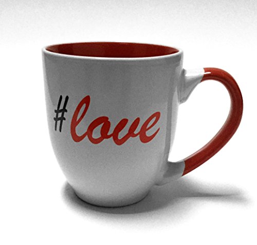 This coffee mug is two-toned and comes with a white exterior and colored interior which you can get in maroon. It is made with an excellent ceramic material so it is long-lasting and ideal for businesses or individuals. Their D-shaped handles provide an easy comfort grab. This #Love Mug makes a perfect gift for Valentines Day or just a general gift.